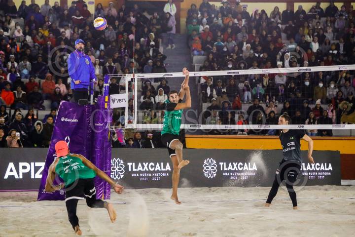 TLAXCALA, TLAXCALA, 09OCTUBRE2023. La Dupla Mexicana Galindo y Aguirre se enfrentaron contra Republica Checa en los juegos del Campeonato Mundial de Voleibol de Playa, celebrado en la Plaza de Toros Apizaco. FOTO: ESSENE HERNÁNDEZ/CUARTOSCURO.COM