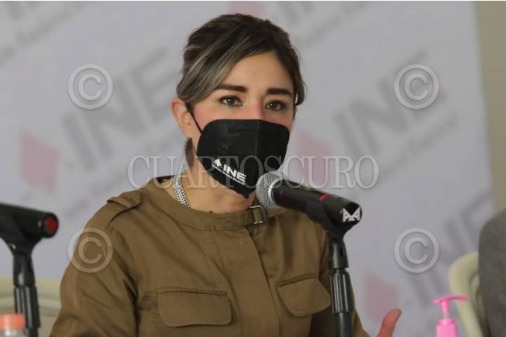 Dania Ravel Cuevas durante la presentación el Protocolo para la atención a víctimas y la elaboración del análisis de riesgo en los casos de Violencia Política en Razón de Género.