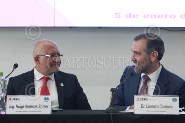 Lorenzo Córdova Vianello durante la firma de convenio entre el INE y la CANIEM.