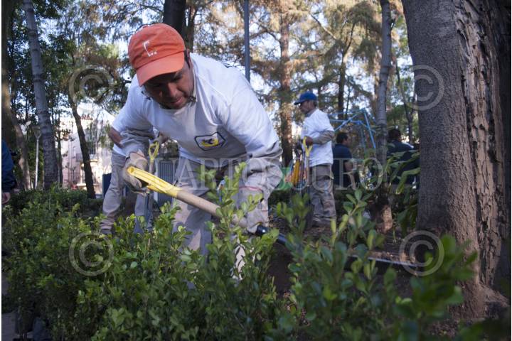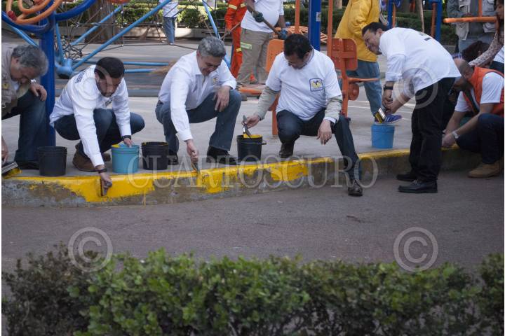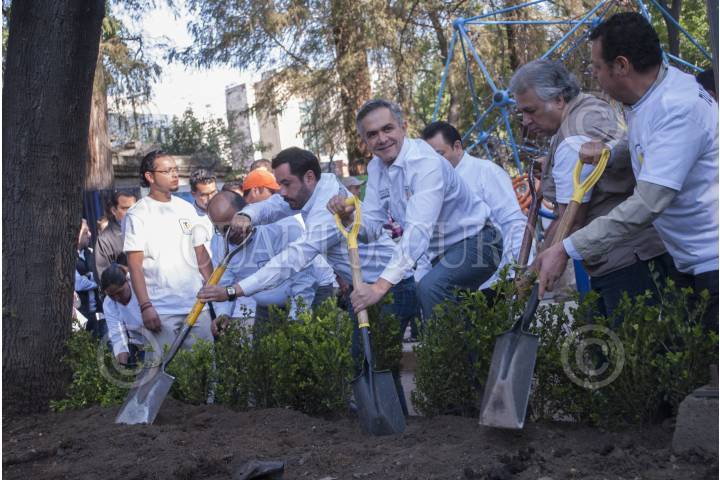 MÉXICO, D.F., 01MARZO2014.- El Jefe de Gobierno, Miguel Ángel Mancera, acompañado de Víctor Hugo Romo, jefe delegacional de Miguel Hidalgo, encabezó la Jornada “Tu Ciudad Te Re-Quiere” en el Jardín Morelos, ubicado en colonia Escandón. Después de la actividades de limpieza en el parque, se dirigieron al mercado para comer tacos de chicharrón y barbacoa. FOTO: MITZI BLANQUET /CUARTOSCURO.COM