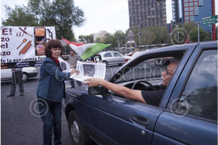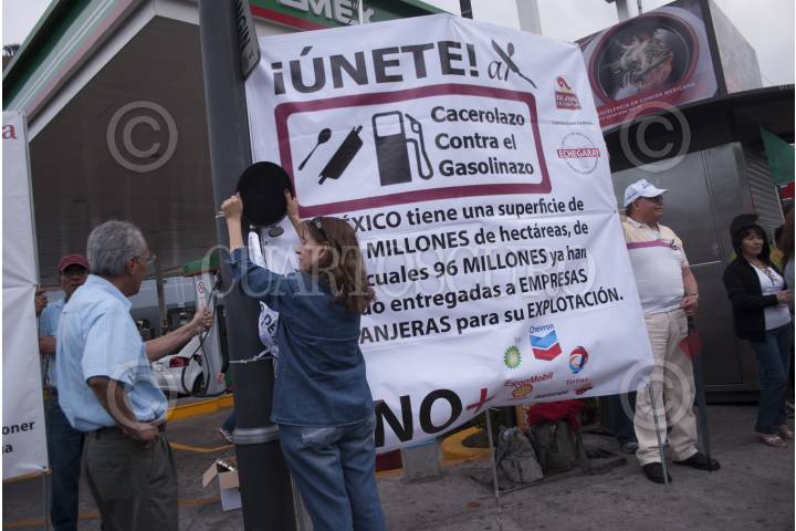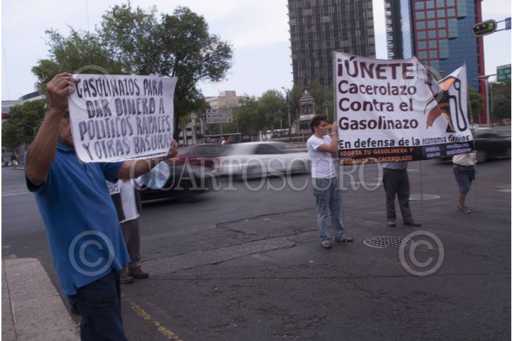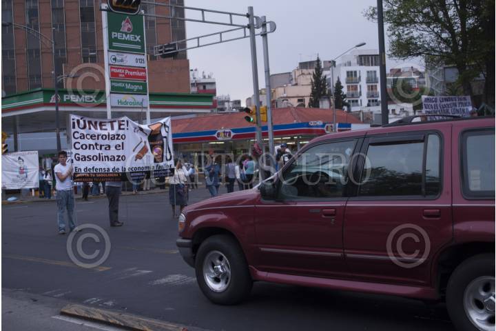 MÉXICO, D.F., 01MARZO2014.- Miembros de la sociedad civil se dieron cita en la gasolinera ubicada en avenida Reforma e Insurgentes para protestar por el “gasolinazo”. El precio quedó en $12.50 por litro de gasolina magna, mientras que la premium tuvo un incremento de once centavos, para quedar en $13.12 por litro. FOTO: MITZI BLANQUET /CUARTOSCURO.COM
