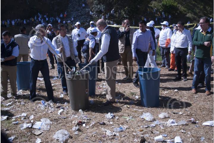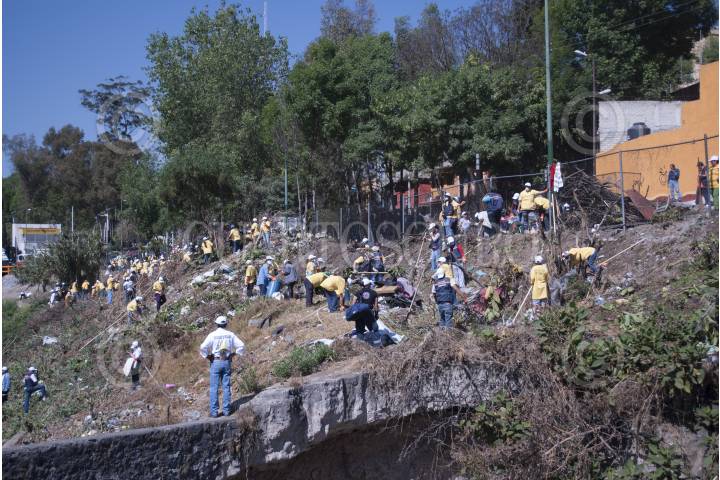 MÉXICO, D.F., 08MARZO2014.- Miguel Ángel Mancera, jefe de Gobierno del Distrito Federal; Leonel Luna, delegado de Álvaro Obregón; Juan José Guerra Abud, secretario de Medio Ambiente y Recursos Naturales del Gobierno federal, y otros funcionarios participaron de el inicio del Programa de Limpieza de Barrancas en la Barranca Becerra. FOTO: MITZI BLANQUET / CUARTOSCURO.COM