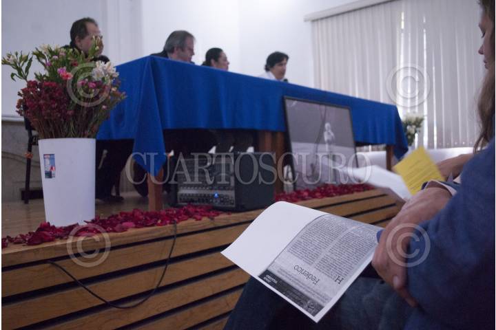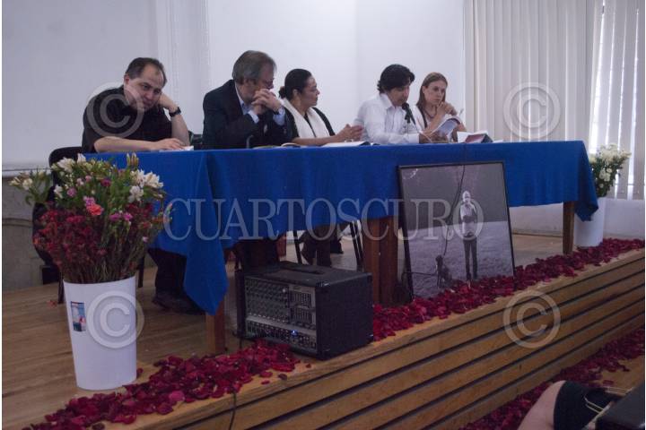 MÉXICO, D.F., 15MARZO2014.- A un mes de su fallecimiento, amigos, familiares y lectores realizaron un homenaje a Federico Campbell en Casa Refugio Citlaltépetl. El encuentro fue encabezado por los escritores Guadalupe Aldaco, Vicente Alfonso, su esposa Carmen Gaitán, uno de sus más grandes amigos Eduardo Clavé y su hijo Federico Campbell Peña. FOTO: MITZI BLANQUET / CUARTOSCURO.COM