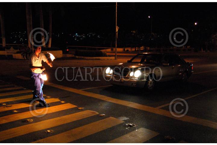 ACAPULCO, GUERRERO, 19OCTUBRE2009.- Jóvenes traga humo, salen por la noche a ganarse la vida sobre la costera Miguel Alemán con su espectáculo de luces, habitualmente siendo observados por turistas nacionales, extranjeros así como residentes FOTO: MARINO D. VALDEZ/CUARTOSCURO.COM