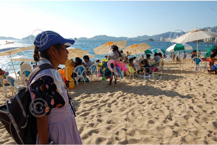 ACAPULCO, GUERRERO, 23DICIEMBRE2009.- Indígenas de la región de la montaña principalmente de Metlatonoc de uno de los municipios mas pobres del Estado de Guerrero, vienen a las playas de puerto de Acapulco a vender sus artesanías aprovechando el mes decembrino. FOTO: MARINO D. VALDEZ/CUARTOSCURO.COM