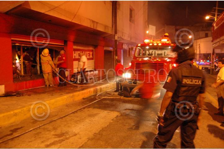 ACAPULCO, GUERRERO, 28ENERO2010.- Elementos de Protección Civil logran sofocar un incendio registrado la noche de ayer en la Organización Ferretera, localizada en la colonia centro, donde existen varios centros comerciales; La Policía Municipal acordono cuatro manzanas y evacuo a condóminos que viven en el edificio en la ferretería “Ortiz”. FOTO: MARINO D. VALDEZ/CUARTOSCURO.COM