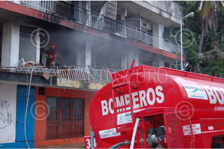 ACAPULCO, GUERRERO, 18FEBRERO2010.- Un incendio de un edificio abandonado en la zona hotelera de Acapulco, provocó gran movilización de los cuerpos de emergencia y la alerta de turistas nacionales y extranjeros que en esos momentos disfrutaban sus vacaciones. Protección Civil municipal logro consumir las llamas. No se reportaron victimas, solo daños materiales aun no cuantificados. FOTO: MARINO D. VALDEZ/CUARTOSCURO.COM
