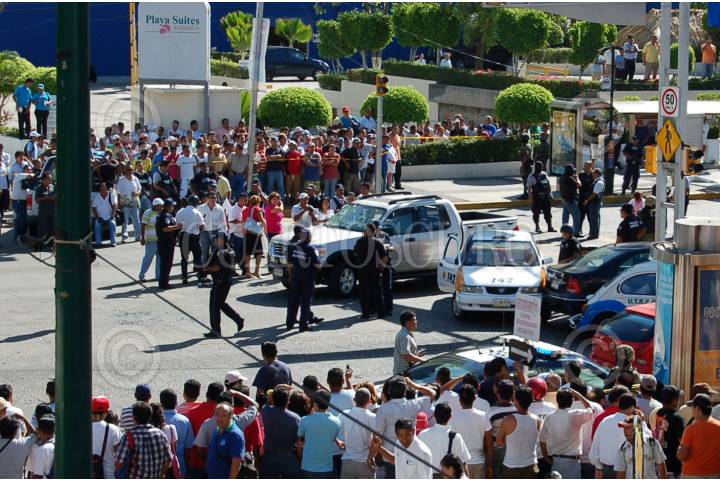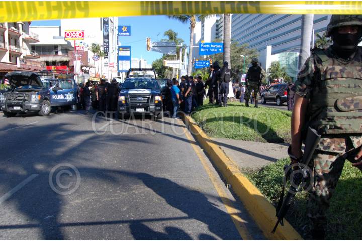 ACAPULCO, GUERRERO, 14ABRIL2010.- Cinco muertos entre ellos un agente federal y un niño de seis años de edad, dejo una balacera entre desconocidos y elementos de la Policía Federal Preventiva ocurrido esta tarde sobre la avenida, Costera Miguel Alemán. FOTO: MARINO D. VALDEZ/CUARTOSCURO.COM