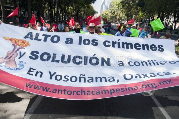 CIUDAD DE MÉXICO, 07DICIEMBRE2016.- Alrededor de 20 mil personas del contingente Movimiento Antorchista marcharon del Ángel de la Independencia hacia la Secretaría de Gobernación para exigir soluciones a sus peticiones en materia de seguridad, laborales, salud, así como para eliminar el bloqueo de recursos a los municipios de Chimalhuacán e Ixtapaluca. FOTO: PAULINA NEGRETE / CUARTOSCURO.COM