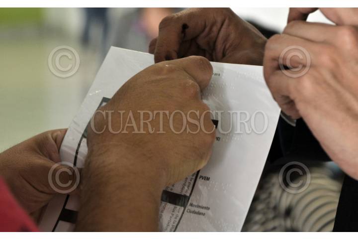 CIUDAD DE MÉXICO, 01JUNIO2018.- Las casillas electorales contaron con platillas braille para facilitar la participación en la votación a personas débiles visuales e invidentes. FOTO: PAULINA NEGRETE/ CUARTOSCURO