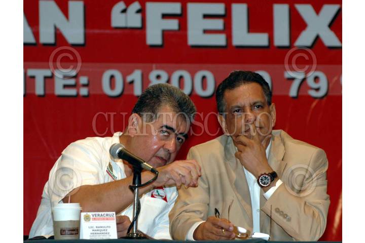 VERACRUZ, VERACRUZ., 02SEPTIEMBRE2007.- En rueda de prensa la dirigenta nacional del PRI Beatriz Paredes Rangel junto al dirente estatal Ricardo Landa Cano dieron a conocer diversos resultados de esta jornada electoral donde según sus encuestas de salida habian obtenido la mayoria del congreso asi como mas de la mitad de las ayuntamientos entre los que figura el de Veracruz que despues de cuatro administraciones panistas al parecer recuperarian esta importante plaza disputada por el candidato de la Coalicion Fidelidad por Veracruz Jon Rementeria. FOTO: ISAAC AGUILAR/CUARTOSCURO.COM
