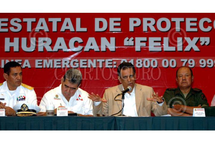 XALAPA, VERACRUZ 04SEPTIEMBRE2007.-Ante las posibles afectaciones que se puedan suscitar, ante el arribo del huracan Fèlix, en el estado de Veracruz principalmente la zona sur. Esta mañana se instalo el comando estatal de protección civil presidido por el gobernador del estado Fidel Herrera Beltran. FOTO:ISAAC AGUILAR/CUARTOSCURO.COM