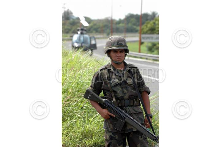 ANTIGUA, VERACRUZ, 10SEPTIEMBRE2007.- Elementos del ejercito mexicano acordonaron el área cercana a la comunidad del Zapotito perteneciente a este municipio, después de que esta madrugada se reportaron seis explosiones en diversas inatalaciones de PEMEX en la zona cenrtro del estado de Veracruz. En este punto, la autopista Veracriuz-Cardel fue cerrada a toda circulación. FOTO: ISAAC AGUILAR/CUARTOSCURO.COM