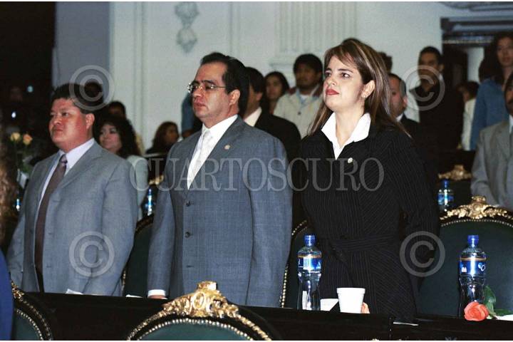 Roberto Carlos Reyes, René Bejarano y Lorena Villavicencio, durante la Sesión Solemne en la Asamblea del D.F. FOTO: Ricardo Hernández/CUARTOSCURO.COM