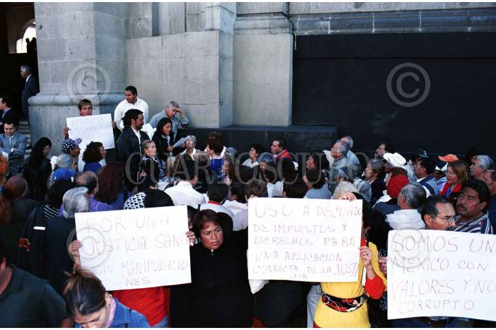 Un grupo de manifestantes se reúnio a las afueras de la Suprema Corte del Justicoa del D.F, para apoyar al jefe de Gobierno Andrés Manuel López Obrador por los cobros del paraje San Juan. FOTO: Ricardo Hernández/CUARTOSCURO.COM