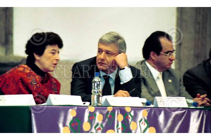 Raquel Sosa, el jefe de Gobierno Andrés Manuel López Obrador , René Bejarano, presentes durante el 50 Aniversario del Sufragio de la mujer en nuestro pais. FOTO: Ricardo Hernández/CUARTOSCURO.COM