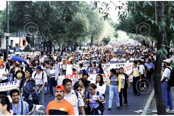 Profesores y alumnos del estado de Oaxaca, se manifestaron por avenida reforma para dirigirse a la Secretaria de Gobernación, se manifiestan en contra de la privatización de la educación en México. FOTO: Ricardo Hernández/CUARTOSCURO.COM