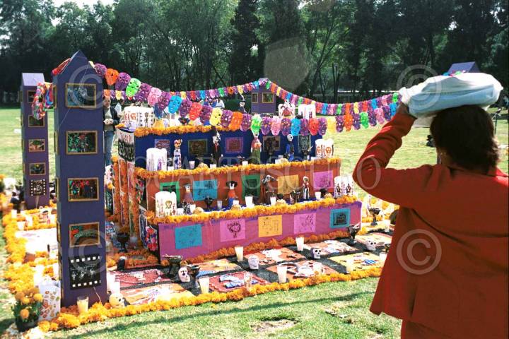 En estas fechas podemos encontrar ofrendas por cualquier punto de la Ciudad de México.Esta ofrenda se encuentra dentro de la explanada de la UNAM. FOTO: Ricardo Hernández/CUARTOSCURO.COM
