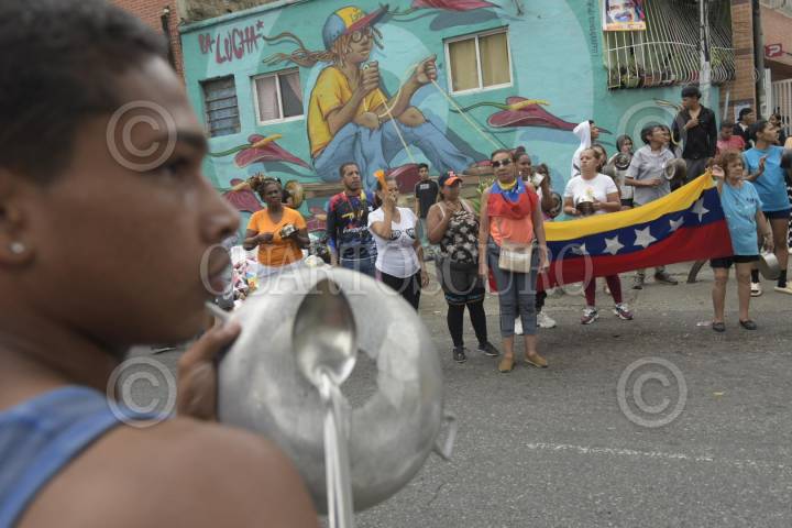 CARACAS, VENEZUELA, 29JULIO2024.- Habitantes del barrio "La Lucha", al este de la capital venezolana, salieron a las calles para protestar por los resultados de la elección presidencial del día de ayer 28 de julio, en donde Nicolás Maduro fue nombrado como ganador de la elección presidencial. Los “cacerolazos”, son una forma de protesta que busca hacer bulla y demostrar su incomodidad ante la situación político social. FOTO: ISRAEL FUGUEMANN /CUARTOSCURO.COM
