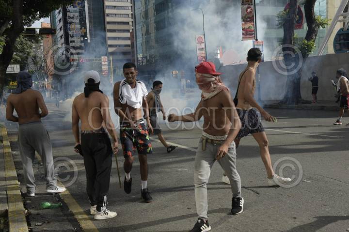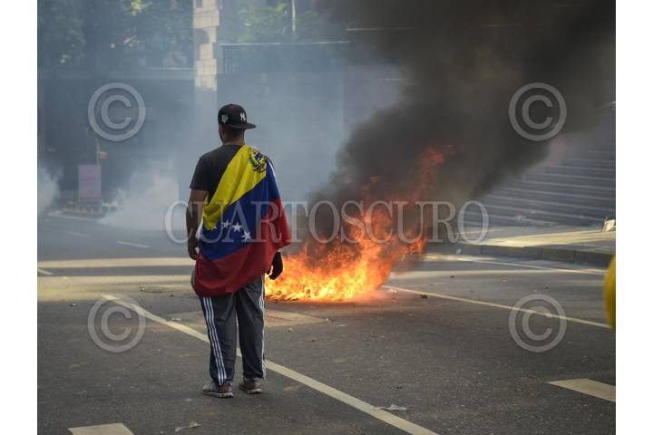 CARACAS, VENEZUELA, 29JULIO2024.- Cientos de personas salieron a protestar por la tarde de este 29 de julio, luego de que la noche de ayer el Consejo Nacional Electoral (CNE), diera a conocer los datos que daban por “ganador irreversible”, al candidato y presidente venezolano Nicolás Maduro. La concentración nació en uno de los barrios más icónicos de la ciudad, “El Petare”. Las consignas eran de descontento por el resultado. Los enfrentamientos subieron de tono luego de que la Guardia Nacional Bolivariana salió a la calles para detener el avance de los manifestantes. FOTO: ISRAEL FUGUEMANN /CUARTOSCURO.COM