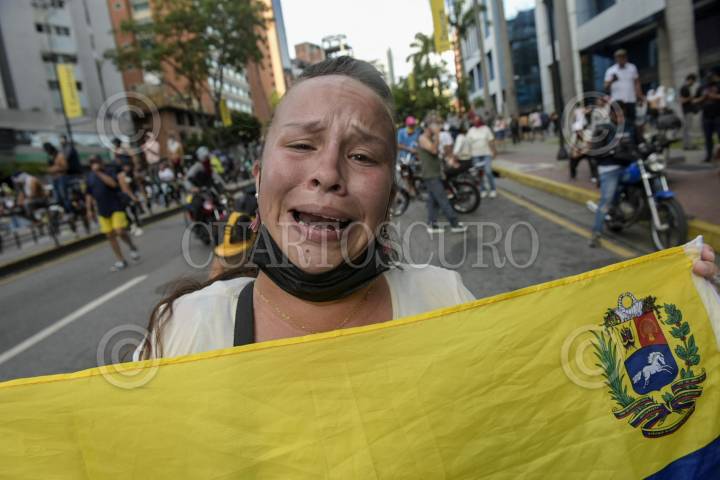 CARACAS, VENEZUELA, 29JULIO2024.- Miles de personas protestan en la ciudad, manifestando su descontento y rechazo ante el resultado anunciado la noche de ayer por el CNE (Consejo Nacional Electoral), en donde se otorgó el triunfo a Nicolás Maduro. Los inconformes aseguran que el veredicto se trata de un fraude, y exigen el cese al gobierno de Nicolás Maduro como presidente del país. FOTO: ISRAEL FUGUEMANN /CUARTOSCURO.COM