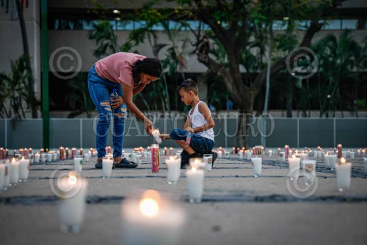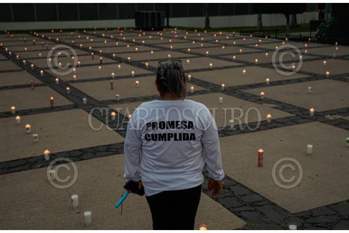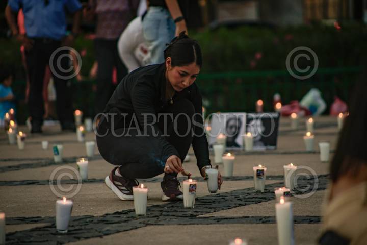 CULIACÁN, SINALOA, 09SEPTIEMBRE2025.- A un año del recrudecimiento de la violencia en Sinaloa, el colectivo Sabuesos Guerreras encendió más de cinco mil veladoras en la explanada de Palacio de Gobierno como acto de protesta silenciosa ante la crisis de desapariciones forzadas. Cada vela, colocada con precisión y rabia contenida, representa una vida arrebatada, una ausencia que persiste. María Isabel Cruz Bernal, representante del colectivo, denunció que en el último año se han registrado mil 800 desapariciones según cifras oficiales, aunque la cifra negra eleva el número a más de tres mil casos. “Es una guerra sin cuartel”, expresó, mientras las velas ardían como testigos mudos de una barbarie que continúa. La manifestación, cargada de fe y desesperación, exigió que el Estado deje de mirar hacia otro lado y reconozca que en Culiacán la luz no basta para disipar la oscuridad. FOTO: JOSÉ BETANZOS ZÁRATE / CUARTOSCURO.COM