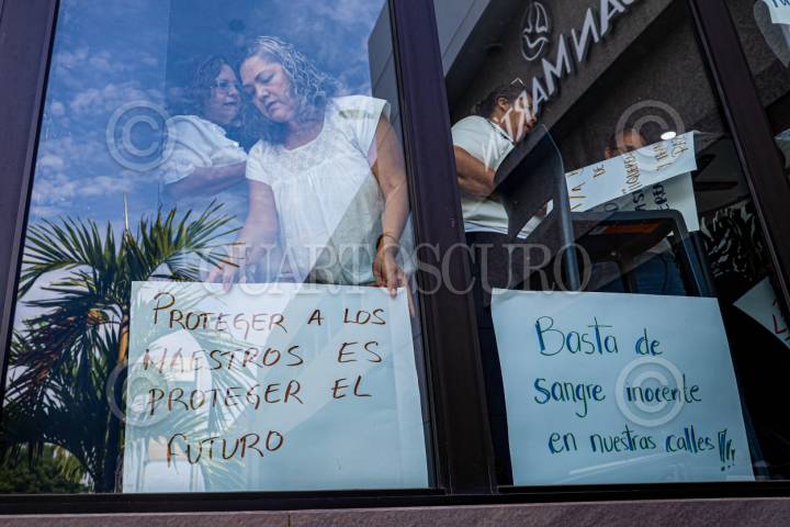 CULIACÁN, SINALOA,15SEPTIEMBRE2025.- Lo que debió ser una celebración por el cumpleaños número 35 de la maestra Jesamel se convirtió en una marcha fúnebre bajo el sol ardiente de Culiacán. Dos días después de que ella y su familia fueran víctimas de una agresión armada en Nuevo Altata, cientos de personas alumnos, docentes, padres de familia y amigos abandonaron las aulas para recorrer las calles en silencio, desde la funeraria hasta Palacio de Gobierno. La Escuela Secundaria Técnica Número 75 se convirtió en epicentro de una protesta que exigió justicia y un alto a la violencia que sigue cobrando vidas inocentes en Sinaloa. Entre coronas, velas y consignas, el cuerpo de Jesamel fue escoltado por quienes no solo la lloran, sino que también se niegan a normalizar la barbarie. FOTO: JOSÉ BETANZOS ZÁRATE/CUARTOSCURO.COM