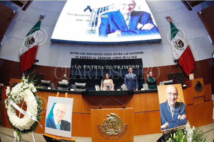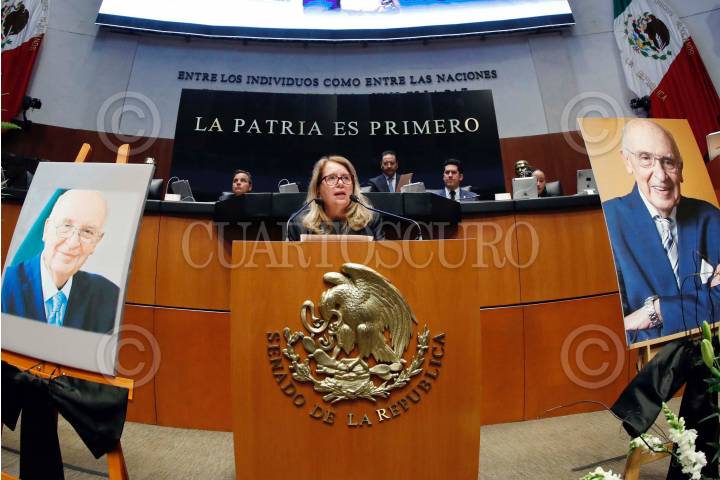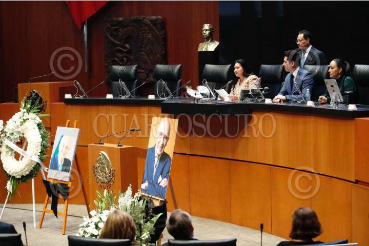 CIUDAD DE MÈXICO, 07AGOSTO2024.- Fue homenajeado de manera póstuma José Agustín Ortiz-Pinchetti (1937-2024), quien se desempeñaba como titular de la Fiscalía Especializada en Delitos Electorales (FISEL), durante la sesión de la Comisión Permanente en el Senado. Su esposa Loretta Ortiz, ministra de la SCJN, lo recordó como un político "con alturas de miras siempre forjador de consensos, incluyente y plural". La senadora Ana Lilia Rivera, quien preside la mesa directiva del Senado, destacó su defensa de la democracia. FOTO: SENADO DE LA REPÚBLICA/CUARTOSCURO.COM
