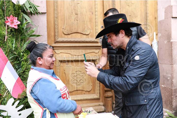 ZACATECAS, ZACATECAS, 02DICIEMBRE2023.- Eduardo Verástegui, actor y productor, visitó la ciudad para recorrer las calles del centro histórico y recabar firmas para postularse como candidato independiente a la Presidencia de Mexico. FOTO: EDGAR CHÁVEZ /CUARTOSCURO.COM