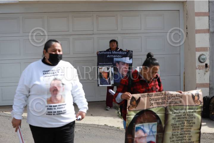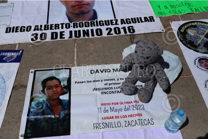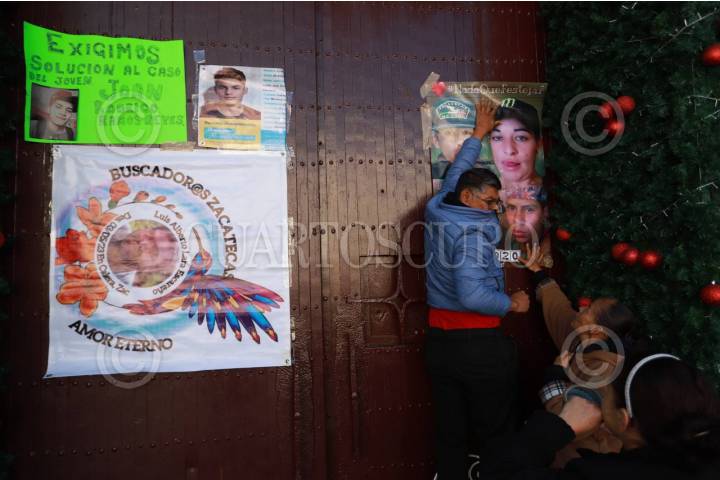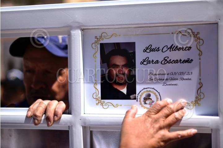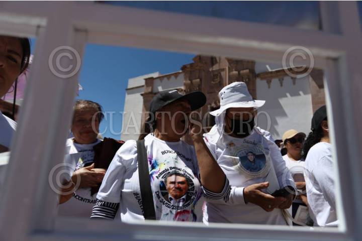 ZACATECAS, ZACATECAS, 18DICIEMBRE2023.- Colectivos y familiares de personas desaparecidas hicieron acciones de protesta en tres distintos puntos: Palacio de gobierno, Congreso del Estado y Fiscalía Especializada en Desaparición Forzada de personas; como parte de las acciones espejo convocadas a nivel nacional después del informe y declaraciones de Andrés Manuel López Obrador que pretende con un “censo” dar nuevas cifras de desaparecidos. FOTO: EDGAR CHÁVEZ /CUARTOSCURO.COM