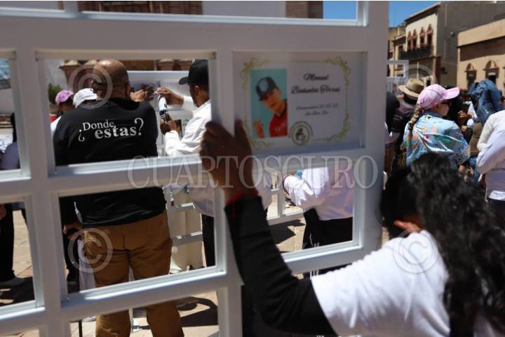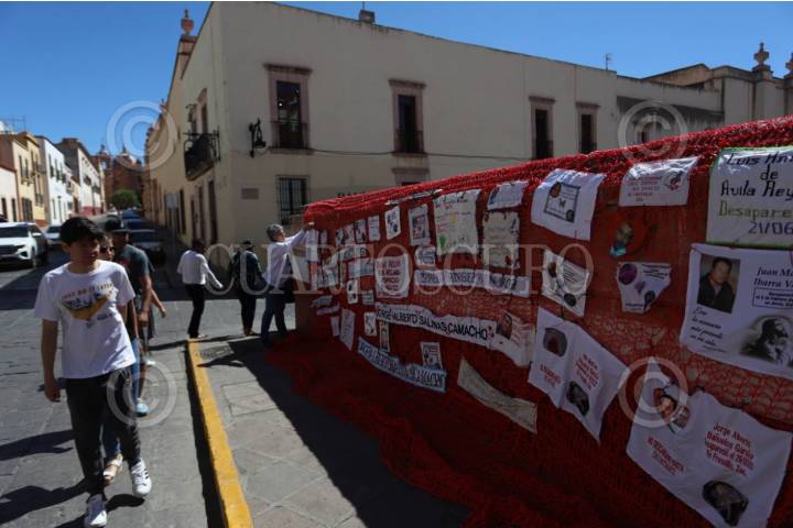 ZACATECAS, ZACATECAS, 20ABRIL2024.- En el marco de la Jornada Nacional de Búsqueda a nivel nacional, Colectivos Unidos de Personas Desaparecidas en Zacatecas, instalaron tres murales permanentes con cédulas de búsqueda en la plaza del Congreso del Estado de Zacatecas, cómo parte de la lucha por la memoria. Cabe decir que esta semana la entidad registró 4 mil personas desaparecidas o no localizadas, de las cuales más del 60 por ciento se presentaron del 2022 a la fecha. FOTO: EDGAR CHÁVEZ /CUARTOSCURO.COM