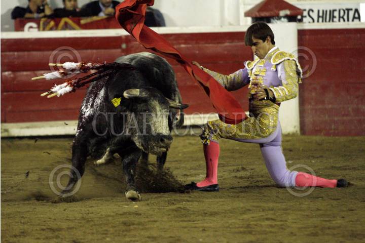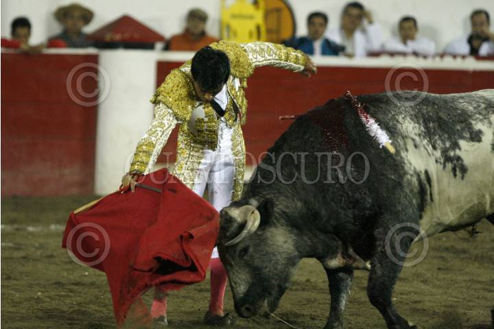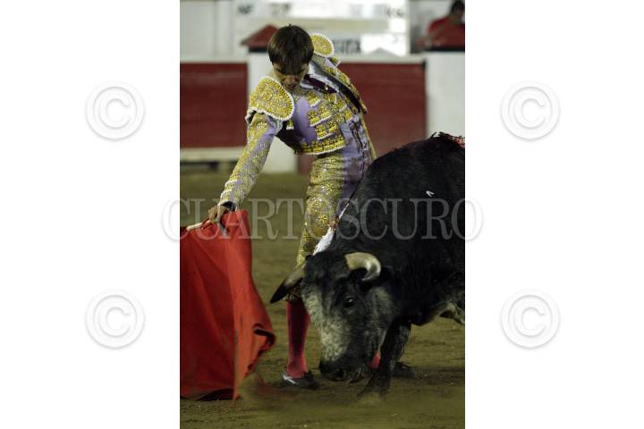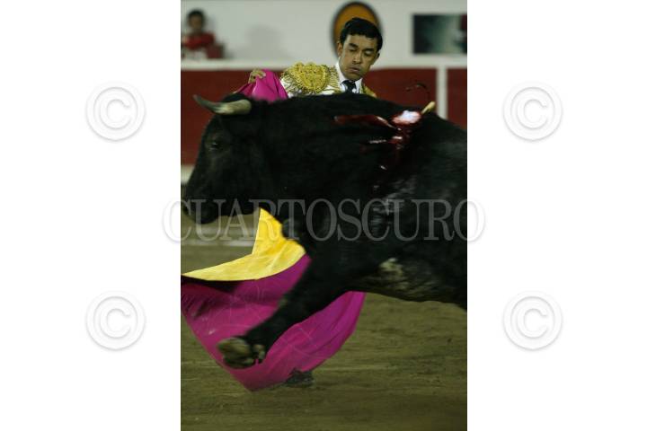 PUEBLA, PUEBLA, 23MAYO2009.- Ayer por la noche, el matador tlaxcalteca, Rafael Ortega, torea a uno de los 6 toros de la casa Reyes Huerta, en el encuentro mano a mano que tuvo con Arturo Macías "El Cejas", en la plaza de toros El Relicario. FOTO: JAVIER PALACIOS/CUARTOSCURO.COM