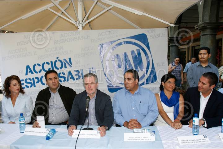 PUEBLA, PUEBLA, 29MAYO2009.- El panista, Santiago Creel Miranda, visitó la capital poblana para reunirse con los miembros del PAN en Puebla, y apoyar en la campaña de los candidatos a diputados federales. FOTO: JAVIER PALACIOS/CUARTOSCURO.COM