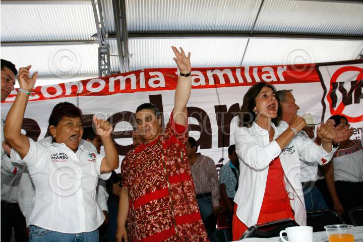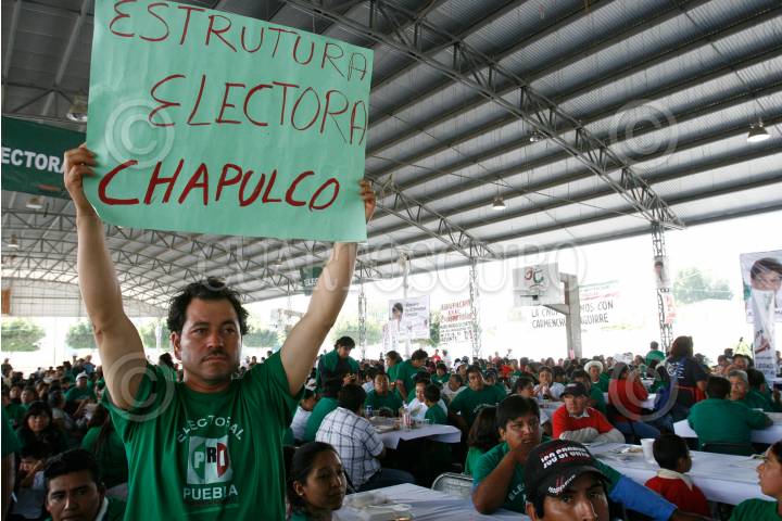 TEHUACÁN, PUEBLA, 12JUNIO2009.- En gira de trabajo por el estado de Puebla, Beatriz Paredes Rangel, dirigente del Comité Ejecutivo Nacional del PRI, acudió a un mitín político organizado por el comité local, para apoyar a los candidatos a diputados federales del distrito 15 y 16 correspondiente a los municipios de Tehuacán y Ajalpan. En dicha gira, la lideresa visitó las ciudades de Amalucan, San Pedro Cholula y finalizó en la capital poblana. FOTO: JAVIER PALACIOS/CUARTOSCURO.COM