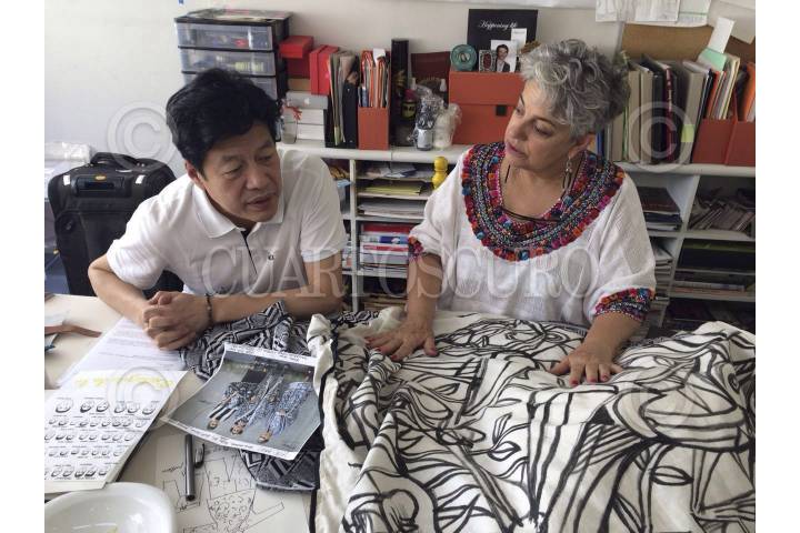 CLERMONT, FRANCIA, 15SEPTIEMBRE2016.- El Festival Internacional de Textiles Extraordinarios (FITE) que se presenta en Clermont-Ferrand, en Francia, desde junio y hasta diciembre de 2016, es lo que su nombre indica: una búsqueda fuera de lo ordinario en el mundo textil y de la moda. El tema de la edición de este año, “Rebeldes”, fue la oportunidad perfecta para Carmen Rión. Como diseñadora tenía mucho que contar. En colaboración con Kinor Jiang, director del área de Textiles del Politécnico de Hong Kong, a quien conociera en la anterior edición del FITE en Manila, Filipinas, se decide el proyecto: las estudiantes de Kinor, Yishu Yan y Peng Qingxin, trabajarían en el estampado de telas con el motivo de “los 43” –surgido de una idea de la estudiante de moda Nadia Gómez– y el taller de Rión en México se encargaría del diseño de las prendas y su confección... FOTO: DANIEL CRUZ RIÓN/ ESPECIAL CUARTOSCURO.COM