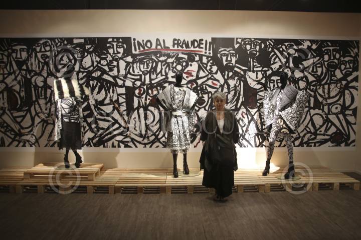 CLERMONT, FRANCIA, 15SEPTIEMBRE2016.- Así nace MX+HK con las series No al fraude y Bedazilu´du lii (palabra zapoteca que significa “Los recordamos”) Pero detrás de este simple relato hay una carga de historia del país: una colección nacida de la exigencia de justicia por parte de un artista contra el fraude electoral y la desaparición de los ya desaparecidos estudiantes de Iguala plasmados en un vestido que concursaba por un premio... FOTO: DANIEL CRUZ RIÓN/ ESPECIAL CUARTOSCURO.COM