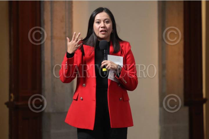 CIUDAD DE MÉXICO, 18SEPTIEMBRE2025.- Angélica Noemí Juárez Pérez, subsecretaria de Educación Básica, durante su participación en la Conferencia del pueblo en el Salón Tesorería en Palacio Nacional. FOTO: GRACIELA LÓPEZ/CUARTOSCURO.COM