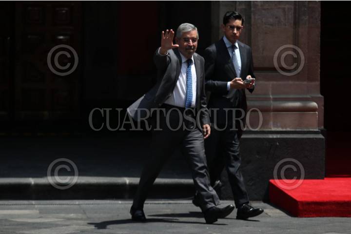 CIUDAD DE MÉXICO, 18SEPTIEMBRE2025.- Juan Ramón de la Fuente, secretario de Relaciones Exteriores, Edgar Amador Zamora, secretario de Hacienda y Crédito Público, , durante la llegada del primer ministro de Canadá, Mark Carney, a Palacio Nacional. FOTO: GRACIELA LÓPEZ/CUARTOSCURO.COM