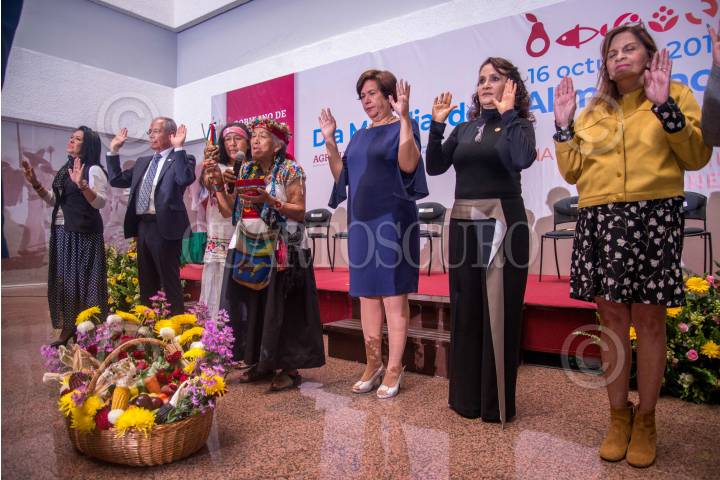 CIUDAD DE MÉXICO, 16OCTUBRE2019.- En el marco de la conmemoración del Día Mundial de la Alimentación 2019, auspiciado por la FAO, México, a través de la Secretaría de Agricultura y Desarrollo Rural (SADER), ratificó su responsabilidad con la aplicación de políticas públicas y acciones concretas orientadas a fortalecer la seguridad y soberanía alimentaria. En la sede de la SADER, el coordinador general de Desarrollo Rural, Salvador Fernández Rivera, en representación de su titular Víctor Villalobos, afirmó que la alimentación es un derecho humano, reconocido en más de 30 países, incluyendo México, y que en esta administración representa un desafío reducir los índices de pobreza alimentaria que inciden en 25 millones de habitantes, prácticamente el 20 por ciento de la población total. En el acto también participaron La titular del DIF Nacional, María del Rocío García Pérez, El gobernador de Hidalgo, Omar Fayad Meneses, la diputada federal Dolores Padierna Luna, la representante de la FAO en México, Lina Pohl, así como diputados y senadores. FOTO: ANDRÉS YÁÑEZ /CUARTOSCURO.COM
