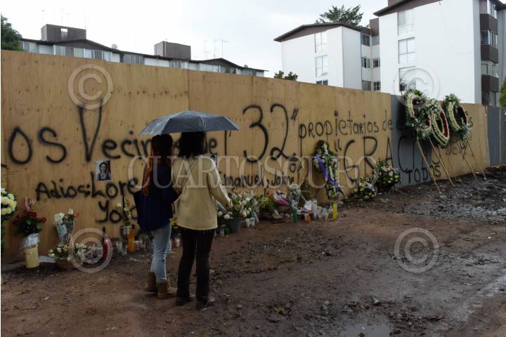 CIUDAD DE MÉXICO, 01OCTUBRE2017.- Vecinos de la colonia Girasoles colocaron un memorial en el predio en donde cayo una unidad habitacional tras el sismo del pasado 19 de septiembre, en el lugar murieron varios residentes. FOTO: CARLOS MARURI /CUARTOSCURO.COM
