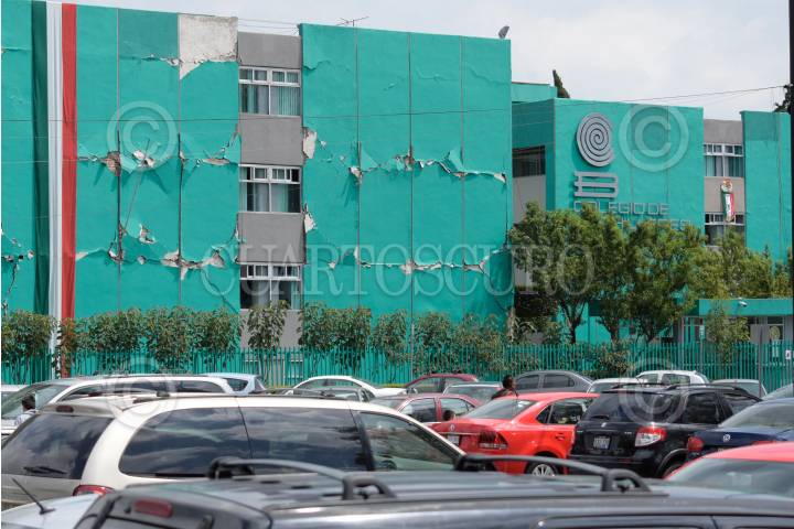 CIUDAD DE MÉXICO, 01OCTUBRE2017.- El Colegio de Bachilleres, ubicado a un costado en la Alameda Sur, delegación Coyoacán, muestra varias cuarteaduras en su fachada tras el sismo del 19 de septiembre. FOTO: CARLOS MARURI /CUARTOSCURO.COM