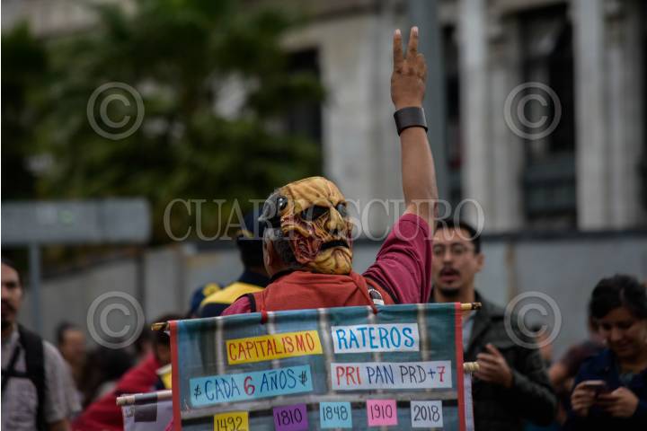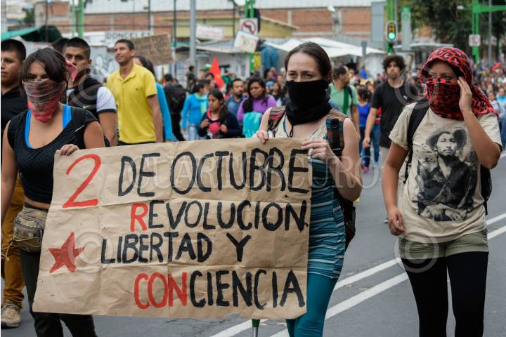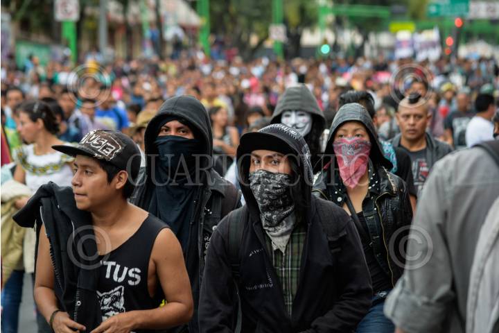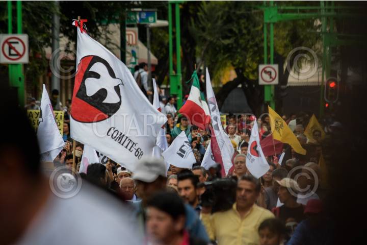 CIUDAD DE MÉXICO, 02OCTUBRE2017.- Al conmemorarse el 49 aniversario de la masacre estudiantil de 1968, ciento de personas, colectivos, sociedad civil, y el Comité 68, marcharon de Tlatelolco al Zócalo capitalino para exigir justicia y que no quede impune. FOTO: CARLOS MARURI /CUARTOSCURO.COM