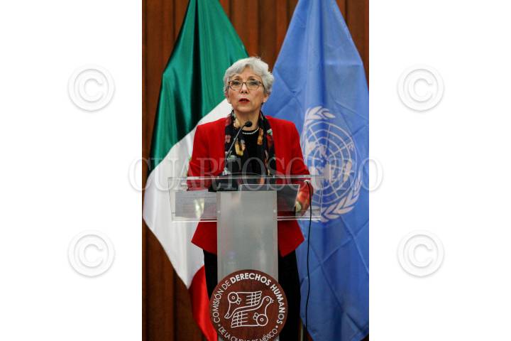 Carmen Rosa Villa participó en una conferencia de prensa en la Comisión de Derechos Humanos de la Ciudad de México con motivo de la visita del comité contra la desaparición forzada (CED) de la Organización de las Naciones Unidas (ONU)