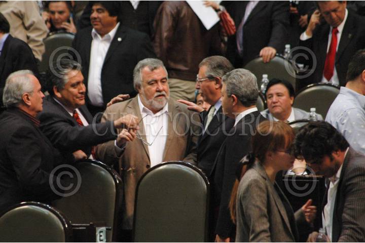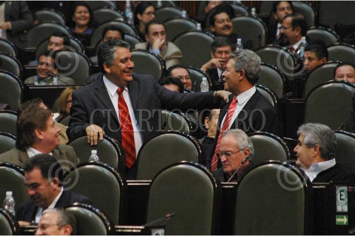MÉXICO, D.F., 31OCTUBRE2009.- Guadalupe Acosta Naranjo, diputado por el PRD y David Penchina, diputado del Partido Revolucionario Institucional (PRI), durante la sesión en la Cámara de Diputados en la cual se emitió el debate sobre la Ley de Ingresos del próximo año. FOTO: LUZ MORENO/CUARTOSCURO.COM