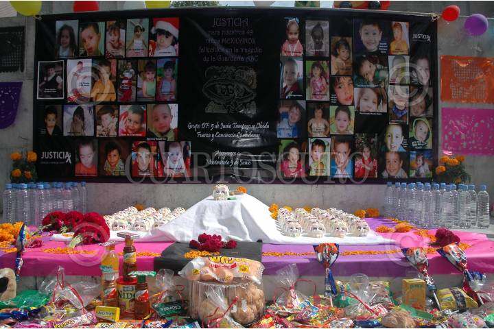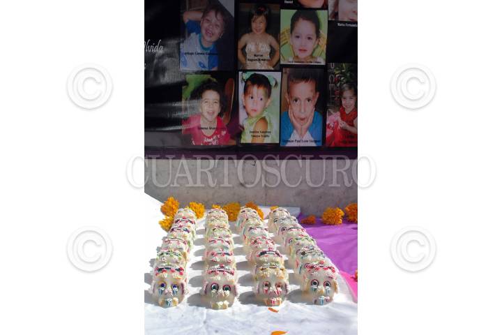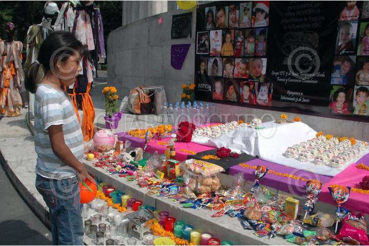 MÉXICO, D.F., 01NOVIEMBRE2009.- Familiares y amigos de las víctimas ddel incendio en la guardería ABC, en Hermosillo, Sonora, colocaron una ofrenda con dulces y juguetes en memoria de los niñas y niñas. FOTO: LUZ MORENO/CUARTOSCURO.COM