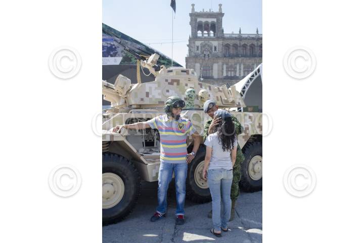 MÉXICO, D.F., 18FEBRERO2013.- Con motivo de los cien años del Ejército Mexicano, se inaguró el 15 de febrero una exposición en la plancha del Zócalo capitalino titulada "Fuerzas Armadas. Pasión por servir a México" donde acuden niños, jóvenes y adultos , para conocer el equipo con que cuenta esa institución FOTO: SANDRA PÉREZ /CUARTOSCURO.COM