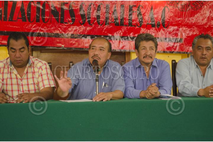 MÉXICO, D.F., 18FEBRERO2013.-Antonio Mendoza, representante de la organización, de comerciantes de vías publicas CCAMPAAC; Nicolás Vázquez, represante de transportistas; Ely Homero Aguilar, representante del Frente Popular Francisco Villa, por vivienda y Manuel García, representante por el transporte del Edo. de México; organizaciones pertenecientes al movimiento la Alianza Mexicana de Organizaciones Sociales AMOS, ofreció una conferencia para informar sobre su próxima movilización nacional "En defensa del vida" , frente al embate de los gobiernos y los grupos de poder económico contra los que menos tienen, que sera el 13 de marzo que partirá del Ángel de la Independencia a las cuatro de la tarde para llegar al zócalo. FOTO: SANDRA PÉREZ /CUARTOSCURO.COM