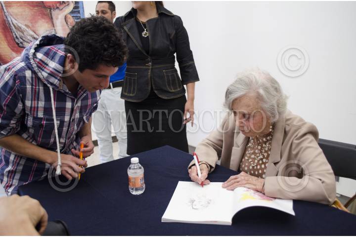 MÉXICO, D.F., 22FEBRERO2013.- La escritora Elena Poniatowska en la firma de autógrafos, dentro de las actividades de la XXXIV edición de la Feria internacional del Libro del Palacio de Minería FOTO:SANDRA PÉREZ / CUARTOSCURO.COM