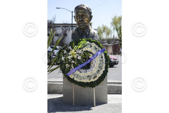 MÉXICO, D.F., 22FEBRERO2013.- Se instaló una ofrenda floral en el busto de Francisco I Madero que se encuentra a un constado del Archivo General de la Nación con motivo del centenario de su asesinato. FOTO:SANDRA PÉREZ / CUARTOSCURO.COM