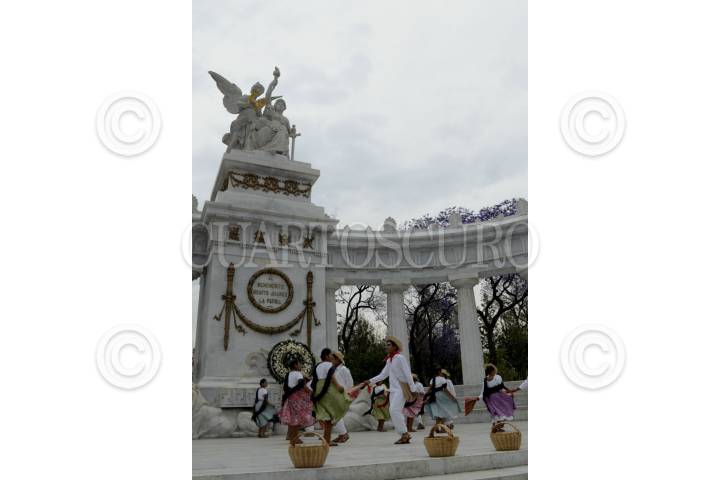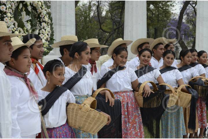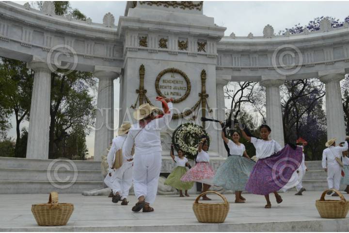 MÉXICO, D.F., 16MARZO2013.- En el Hemiciclo a Juárez la secretaría de Relaciones Exteriores realizó una ceremonia con motivo del próximo aniversario del natalicio del Benemérito de las Américas Benito Juárez, quien fue originario de San Pablo Guelatao Oaxaca. El grupo representativo de danza de Santa María Huatulco Oaxaca ofreció el baile representativo de esta región "la chilena". FOTO: SANDRA PÉREZ /CUARTOSCURO.COM